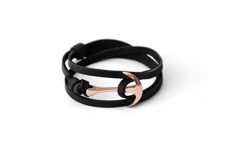 Designed anchor bracelet made by hand, from solid brass base with rose gold platting. Stylish leather strap with adjustable length. Looks great with any styles.