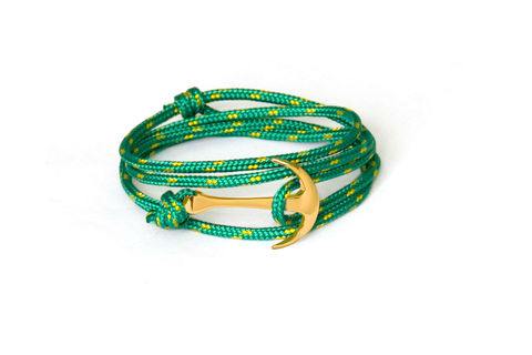 Designed anchor bracelet made by hand, from solid brass base with gold platting. Stylish rope strap with adjustable length. Looks great with any styles.