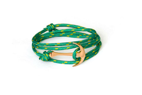 Designed anchor bracelet made by hand, from solid brass base with rose gold platting. Stylish rope strap with adjustable length. Looks great with any styles.