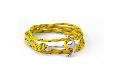 Designed anchor bracelet made by hand, from solid brass base with silver platting. Stylish rope strap with adjustable length. Looks great with any styles.
