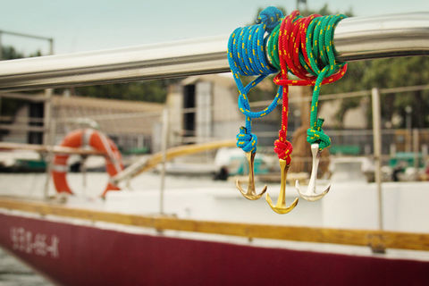 Designed anchor bracelet made by hand, from solid brass base with gold platting. Stylish rope strap with adjustable length. Looks great with any styles.