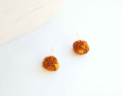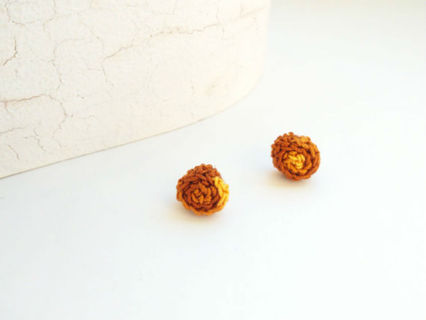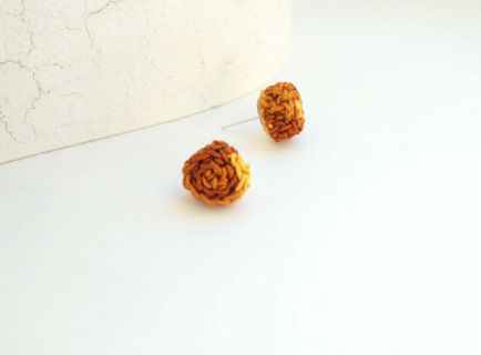 Crochet earrings, post earrings, stud earrings, brown earrings, circle earrings, fiber earrings, semple earrings, mini earrings.