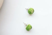 Post earrings, stud earrings, green earrings, circle earrings, fiber earrings, semple earrings, mini earrings, dainty earrings.