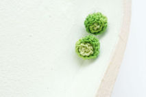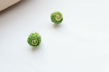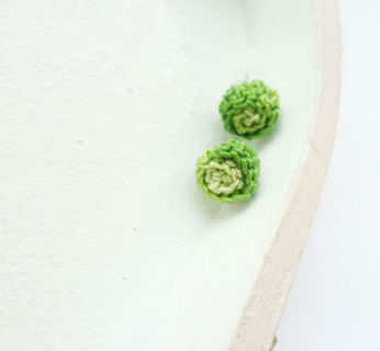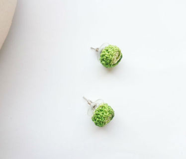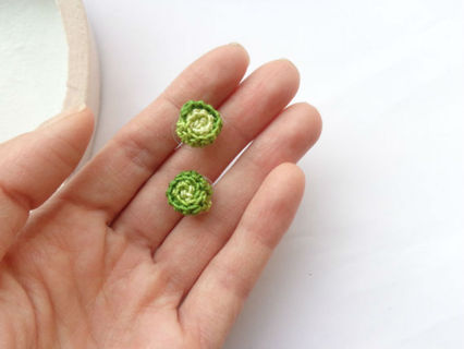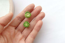 Crochet green earrings, Tiny Stud Earrings, Small simple earrings with crochet circle from cotton yarn. Circles with diameter approx: 1.0 cm, /0.4 inches/.