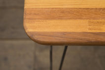 Care instructions: We carefully treat all of our timber with danish oil and beeswax, which really protects the timber from damage by liquids, temperature and other things that can damage it. However, we do recommend that you keep the surface clean and dry by simply wiping off any spillages using a damp cloth. We recommend not using and soaps / detergants on our products. Our steel legs are also protected from the elements, but we recommend keeping them clean and dry and away from water / humidity.