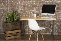 We can add a raw iron 'hairpin' cable tray / tidy fitted underneath the desk at the rear- £80