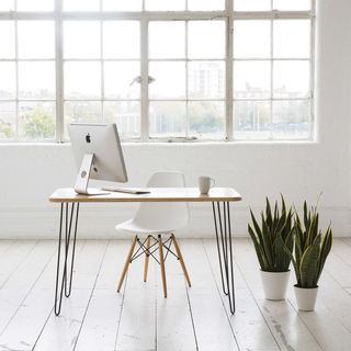 We can add a raw iron 'hairpin' cable tray / tidy fitted underneath the desk at the rear- £80