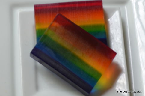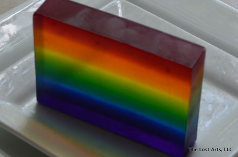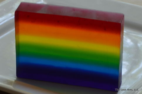 The colors of the rainbow can be found in this raspberry-scented, translucent, handcrafted glycerin soap.