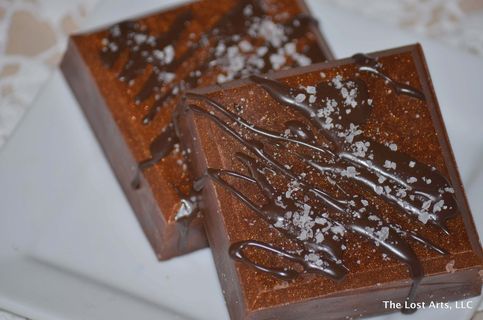 A decadent combination of buttery caramel, brown sugar, and rich vanilla, this handcrafted glycerin soap is drizzled with chocolate and sprinkled with sea salt, and looks and smells good enough to eat!
