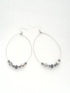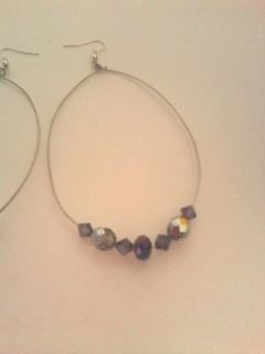 Made of 100% silver wire. Beads are crystal and catch the light wonderfully adding a shimmer.Earrings are about 4 " long and are very lightweight.