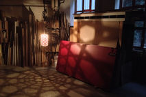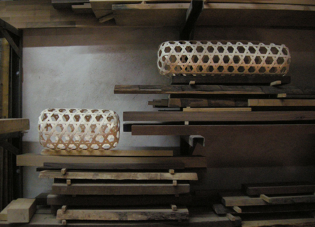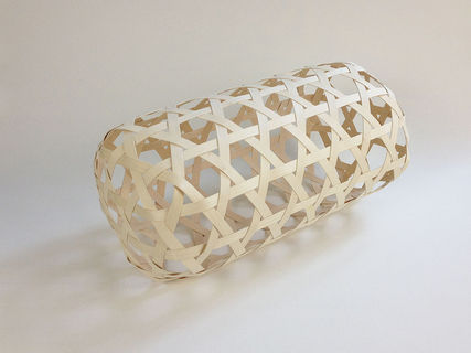 It is inspired by Korean traditional pillow, 'bamboo wife'. Koreans have woven bamboo strips creating a long cylinder form. They hug this 'bamboo wife' when they sleep in summer to be well-ventilated. Man liked to hug this pillow in summer rather than his wife, and it was named 'bamboo wife'. Re-created as a lighting, Wooden Wife casts a beautiful shadow and one can easily change the bulb by stretching any opening of the lighting.