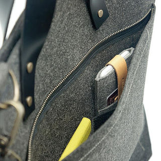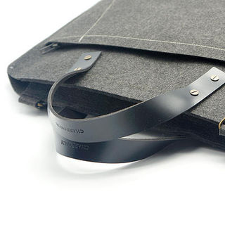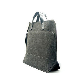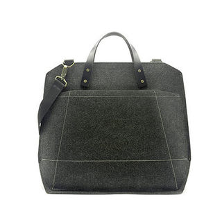 This designer laptop bag is unique, modern and practical. It features a mixture of black leather and charcoal grey wool felt. The laptop compartment inside fits a laptop up to 15-inch. It also keeps you stylish and fashionable while on the move with your laptop and other belongings.