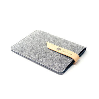 This designer iPad mini sleeve combines minimalism with long lasting elegant accents, it features a mixture of khaki leather and recycle grey wool felt, also a storage compartment. It can keep you stylish and fashionable while on the move with your iPad mini.