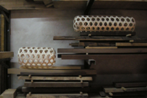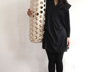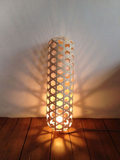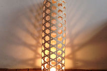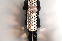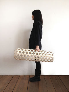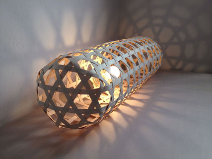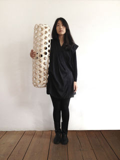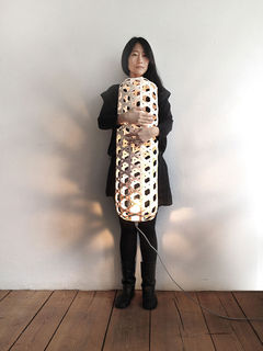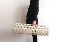 It is inspired by Korean traditional pillow, 'bamboo wife'. Koreans have woven bamboo strips creating a long cylinder form. They hug this 'bamboo wife' when they sleep in summer to be well-ventilated. Man liked to hug this pillow in summer rather than his wife, and it was named 'bamboo wife'. Re-created as a lighting, Wooden Wife casts a beautiful shadow and one can easily change the bulb by stretching any opening of the lighting.