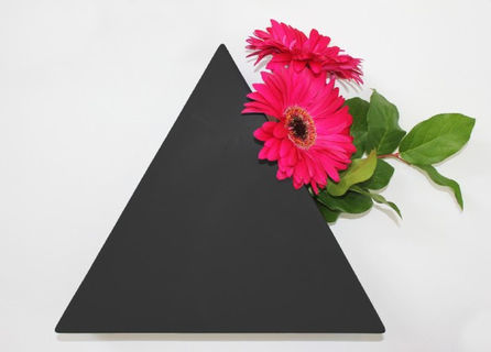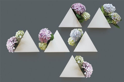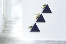 The ceramic triangular shape is optimal to draw blossoming geometrical patterns on the walls, following the 30 degrees angle. The range of compositions possibly obtainable is widened by the availability of "Pardis" in black matte or white matte colors, and this becomes the starting point for endless chromatic solutions when combined with colorful flowers within.
