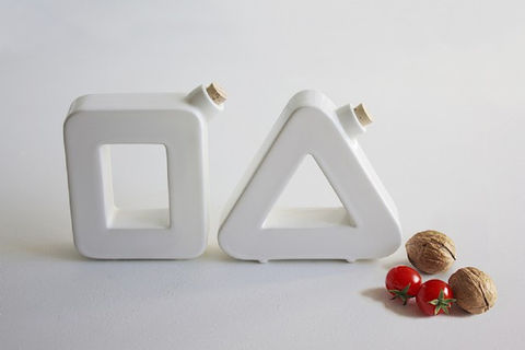 Bringing fun also in the kitchen, the concept of Dan oil-vinegar set is to achieve a visual but also tactile recognition of the object, and it does so through the materialization of the letters. Without falling into obvious, the oil container callout has the shape of the letter "O", while that of vinegar recalls a "V". An ingenious and at the same time so immediate way to distinguish and make new objects that we use daily, giving them an original shape but with clean and simple lines.