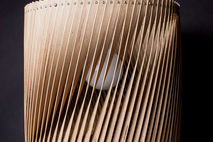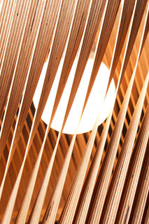 Upcycle Lamp is made from leftovers. Scraps of high-quality birch plywood that were going to be thrown away from the wholesale is being used. The wood is finely sliced in millimeter thin stripes and refined in different working steps and crafted carefully into these lamps. The result is an atmospheric play of shadow and light, indirect light and light permeated plywood.