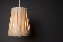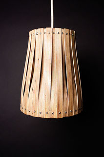 Upcycle Lamp is made from leftovers. Scraps of high-quality birch plywood that were going to be thrown away from the wholesale is being used. The wood is finely sliced in millimeter thin stripes and refined in different working steps and crafted carefully into these lamps. The result is an atmospheric play of shadow and light, indirect light and light permeated plywood.