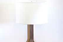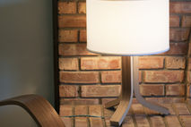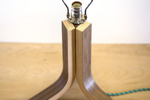 The Traverse has a gorgeous walnut outer layer which is a darker brown wood with varying black and tan grain that adds a bit of sophisticated warmth to any room. We've paired the lamp with a cool tweed cord which has shades of blue, green, and light brown.