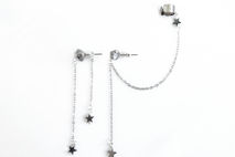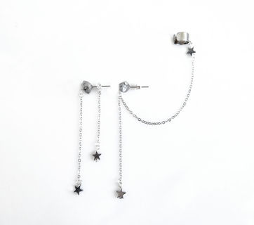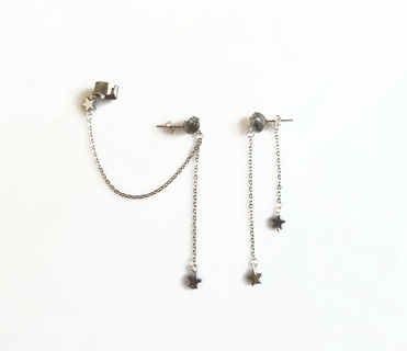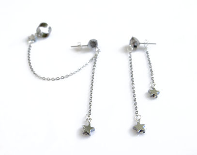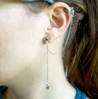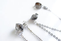 Dainty Herkimer Diamond ear cuff + drop earrings set: a modern and unique pair to effortlessly dress up any outfit. Made with AA grade Herkimer Diamond nuggets with black inclusions, silver plated Hematite stars and chains and hypoallergenic OR 925 Sterling Silver earwires (see the drop down menu for ear wire options). The set features 2 earrings: a drop and a cuff, OR a pair of either - your choice.