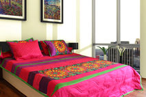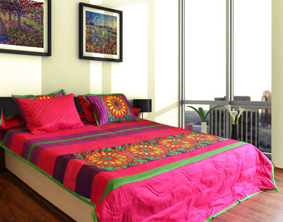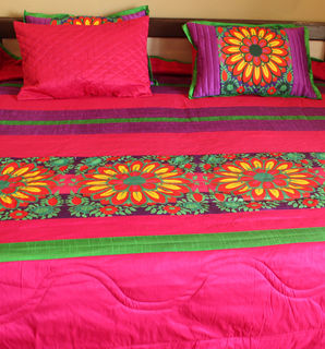 Update your bedroom interior with the Fatfatiya Designs, Vibrant Flower King Size Quilted Bedspread Set. Vibrant Flower Bedspread Set is inspired from painted Havelis of Shekhawati and has been designed to create a sense of style. Its impressive design is a blend of Quirky, Pop style with contemporary aesthetics. This stunning set can fit well with your bedroom settings. It can prove to be a thoughtful and unique gifting option.