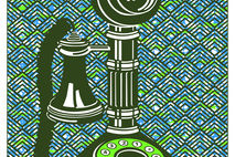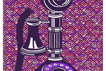 This Gicleé print is inspired by the Candlestick Telephone, commonly used from the late 1890s to the 1940s. It was also known as “upright desk stand”. It became an important piece of technology for modern businesses.