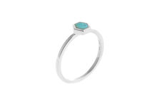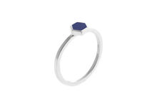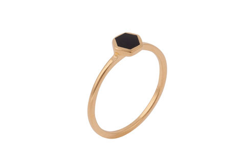 Southern inspiration materialized with a city edge, single honeycomb with genuine stone inlay, set on square band.