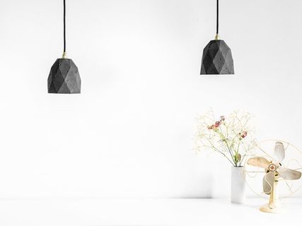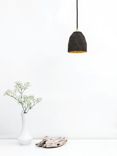The triangualte pendant lamp [T1]dark is cast from a dark grey concrete. It combines noble gold with rough concrete into a timeless and elegant designer lamp. The high quality gilding of the insides emits a pleasant warm light.