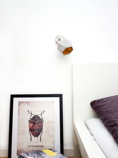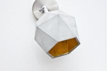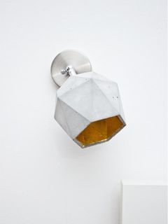 The triangualte wall lamp [T2]spot is cast from a light grey concrete. It combines noble gold with rough concrete into a timeless and elegant designer lamp. The high quality gilding of the insides emits a pleasant warm light.