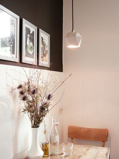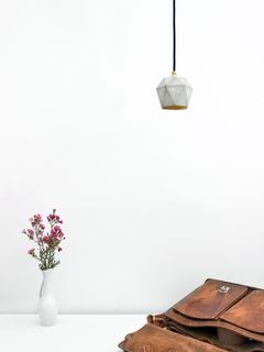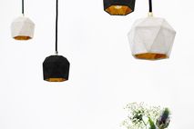 The triangualte pendant lamp [T2] is cast from a light grey concrete. It combines noble gold with rough concrete into a timeless and elegant designer lamp. The high quality gilding of the insides emits a pleasant warm light.