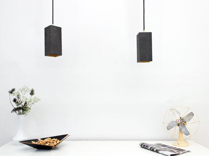 The rectangular pendant lamp [B2]dark is cast from a dark grey concrete. It combines noble gold with rough concrete into a timeless and elegant designer lamp. The high quality gilding of the insides emits a pleasant warm light.
