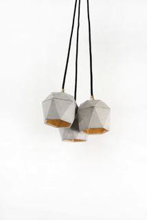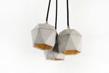 The triangualte pendant lamp [T2]bundle is cast from a light grey concrete. It combines noble gold with rough concrete into a timeless and elegant designer lamp. The high quality gilding of the insides emits a pleasant warm light.
