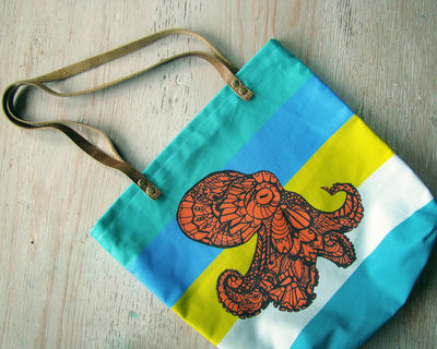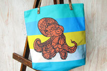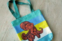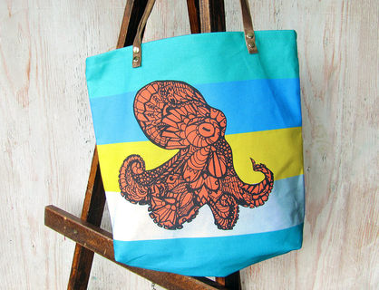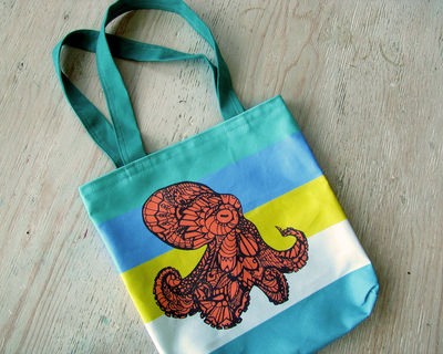 Handmade tote bag featuring my "Octopus Tangle". Great for everyday use: groceries, to carry your tablet , overnight bag, gym, or school bag. It's also small enough to scrunch up and put in another bag.