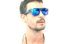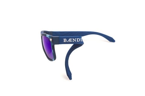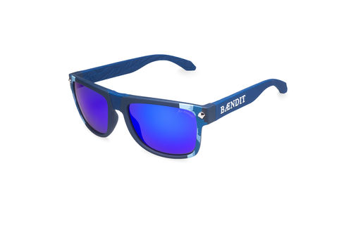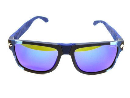 Ned Kelly military blue pattern frames / blue lenses / dark blue temples with white logo and nose bridge.