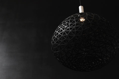 Colony Pendant consists of one intricate 3d printed shade designed by Alex Buckman using digital craft. The LED component is recessed into the CNC machined aluminium fitting reducing the harsh light and instead illuminating the form further accentuating its complexity.