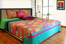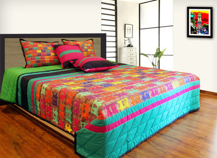 Update your bedroom interior with the Fatfatiya Designs, Vibrant Taxi's King Size Quilted Bedspread Set. Vibrant Taxi's King Size Quilted Bedspread Set is inspired from painted mansions of Shekhawati and has been designed to create a sense of style.Its impressive design is a blend of Quirky, Pop style with contemporary aesthetics. This stunning set can fit well with your bedroom settings. It can prove to be a thoughtful and unique gifting option.