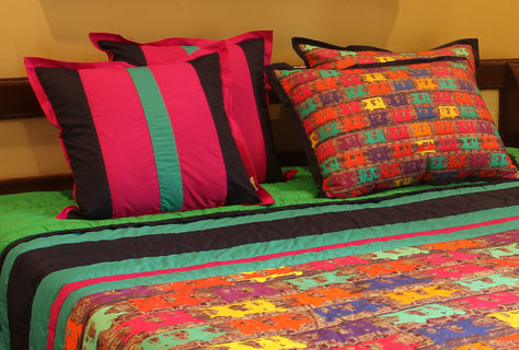 This gorgeous set includes a Bedspread, 2 Pillow Covers and 2 Cushion Cover