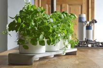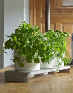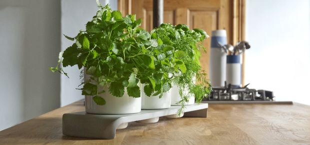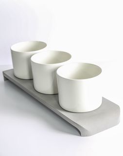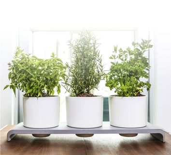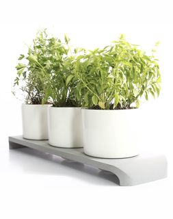 U-Herb features three perfectly proportioned porcelain pots that are conveniently sized to slip in your new culinary additions. A wick in each pot draws water from a reservoir within the concrete tray to further ease the chore of gardening. The set is perfectly scaled to fit on most window ledges.