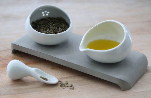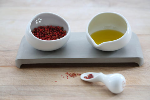 U-Spice celebrates the virtue of palate diversity. This tastefully elegant collection includes pouring and spreading spice bowls as well as a combination spoon and mortar resting on an elegant concrete tray. U-Spice allows guests to savor unique flavors and perfectly portion spices right at the table.