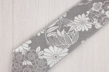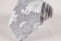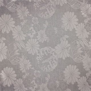 The gray jacquard cotton fabric reminds me of a morning lake covered by blooming flowers. The gray water flows and takes the fallen flowers away.