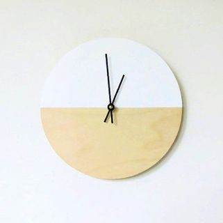This modern wall clock adds a fresh look to any space you decide to display it. The natural wood base is hand painted half white and half natural wood. This simple 10" clock has a wood base which is 1/4" thick. This custom handmade clock is the perfect piece of minimalist wall art. It would look fabulous hung in any room you decide.