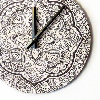 This bohemian style mandala wall clock will be the perfect addition to your boho style space. Custom handmade in perfect detail, it features a unique black mandala design against a white background. The effect is stylishly chic and will give any room in your home an elegant flair that impresses. Custom handmade from a vinyl record, it is an eco-friendly home decor accessory that makes a statement in your home. You can even choose to dazzle a best friend or loved one by gifting them with this handmade wall clock. Order now to ensure availability.