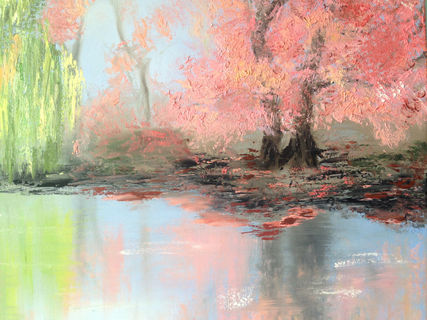 This was a sunny calm day of early spring. I intended to show luminous quietness of the park. Please visit my blog for more details on how the painting was created: