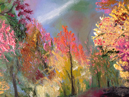 The listing is for a professionally printed signed giclee reproduction of my original oil painting "Fall forest by the lake ", which has sold.