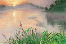 "The lake at the sunset"