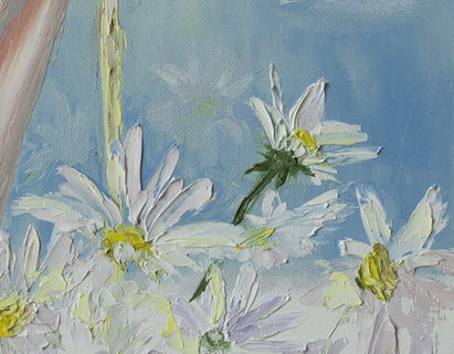 "Daisies in the window" is on 3/4 inch wrapped canvas (back stapled). The sides are painted so it doesn't technically need a frame and ready to be hung as is.
