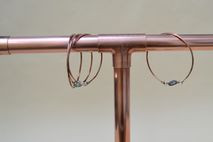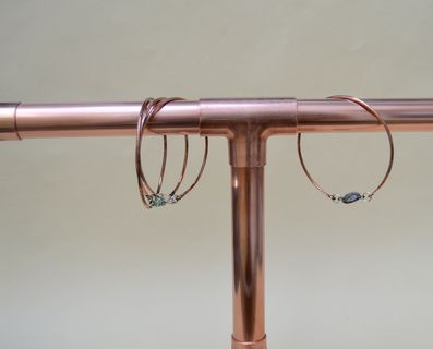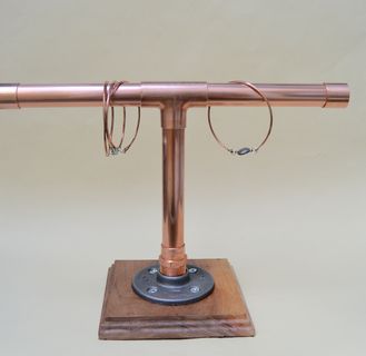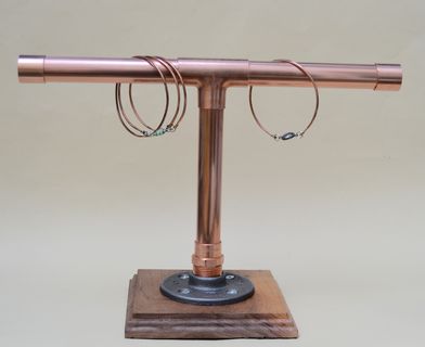 Here is a beautiful industrial jewelry/display stand my husband made out of 3/4" copper and reclaimed black walnut wood. These really come in handy if you have a lot of jewelry like I have. I also have noticed copper is so popular right now.