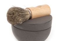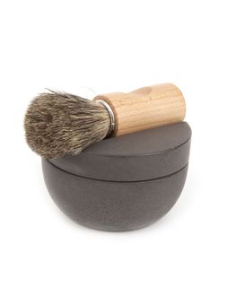 Add a touch of Scandinavian style and Swedish craftsmanship to your daily routine with this graceful shaving cup from Iris Hantverk. It comes complete with a curving concrete container, a badger hair and beech brush, and a bar of handmade cedar wood soap.