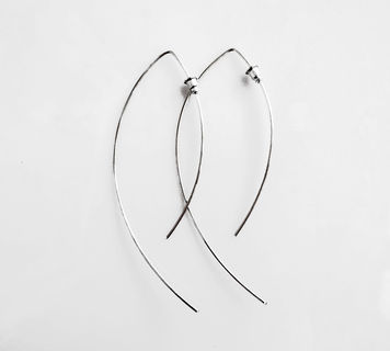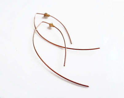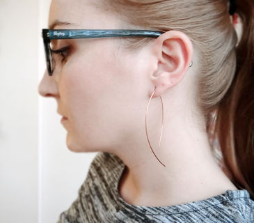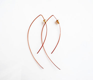 Minimalist long open hoop earrings with a total length of 3 inches (8cm), available in Copper or 925 Sterling Silver.