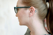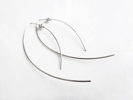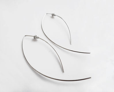Minimalist long open hoop earrings with a total length of 3 inches (8cm), available in Copper or 925 Sterling Silver.